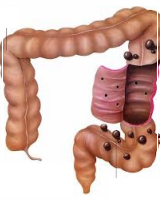 colon bulges out through the outer, muscular layer forming "bubbles", caused by a period